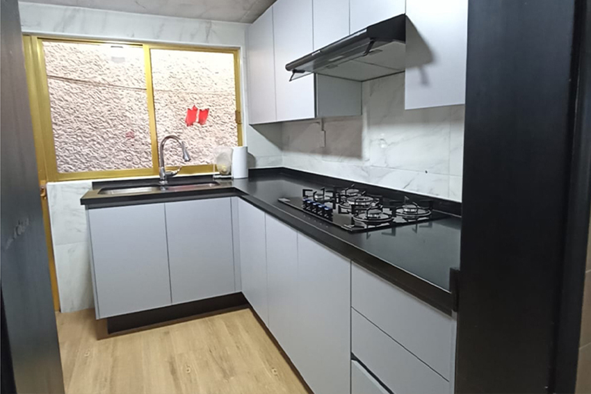 El proyecto de diseño y construcción para una vivienda de 30 m² en Avenida Parque de las Estrellas se centró en optimizar el espacio con un enfoque en funcionalidad y estética. Se diseñó un baño accesible para personas con discapacidad, cumpliendo con las normativas, y se incorporó una bodega para almacenamiento adicional. También se construyó un baño de visitas para las áreas comunes. El proyecto mejoró la funcionalidad de la vivienda, manteniendo un alto estándar estético y soluciones innovadoras.